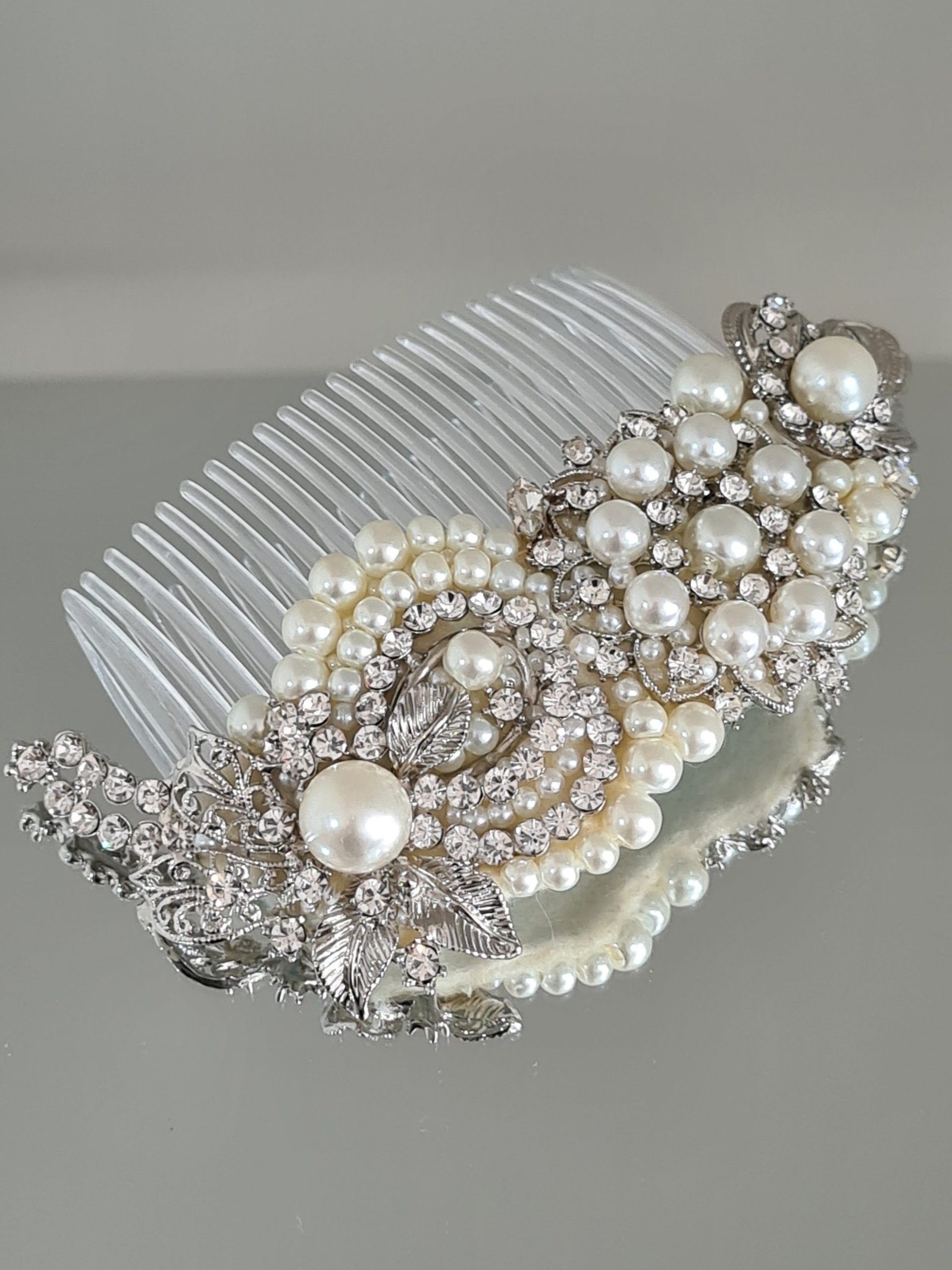 Ivory pearl /Silver bridal comb