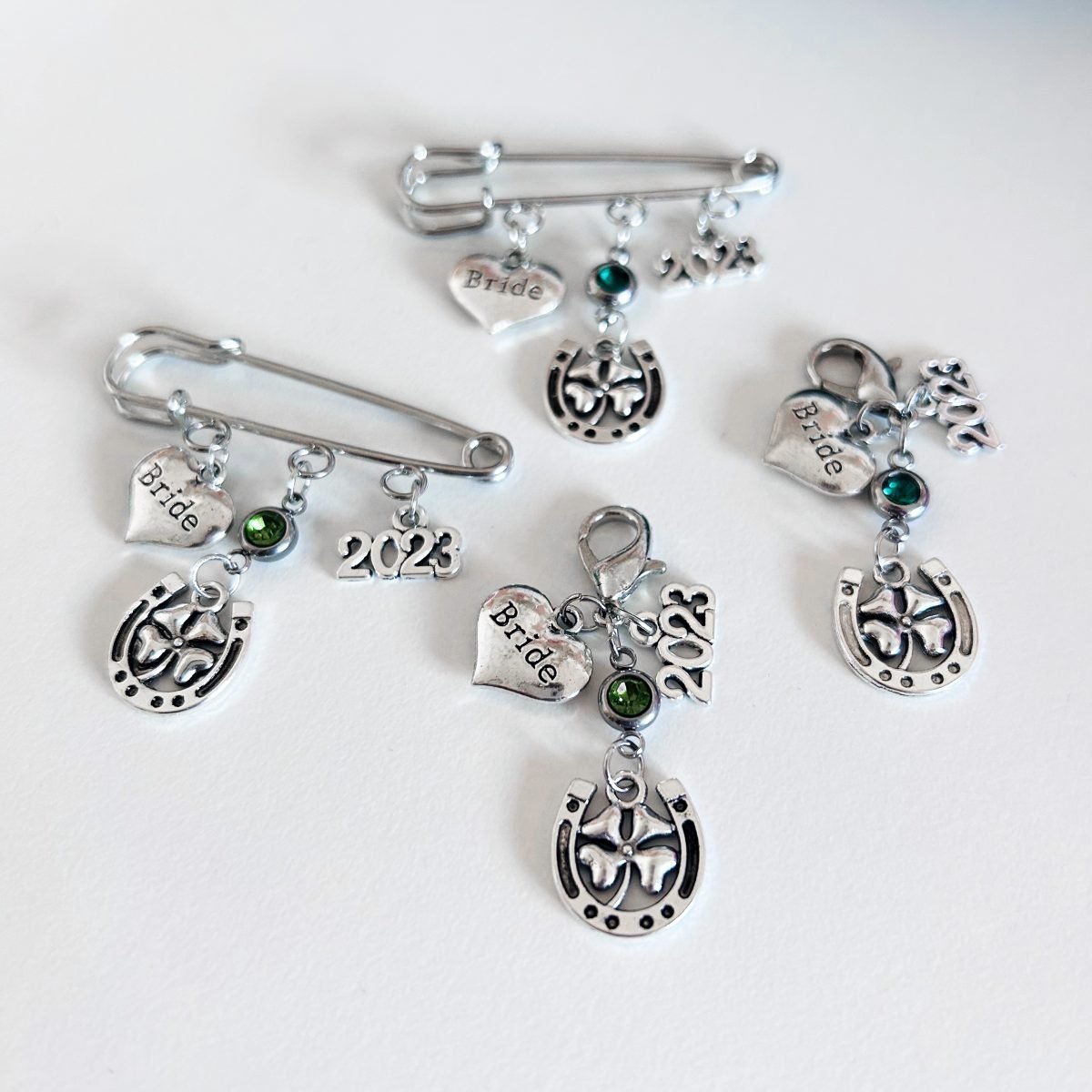 Bride heart, green crystal, horseshoe with clover and your wedding year
