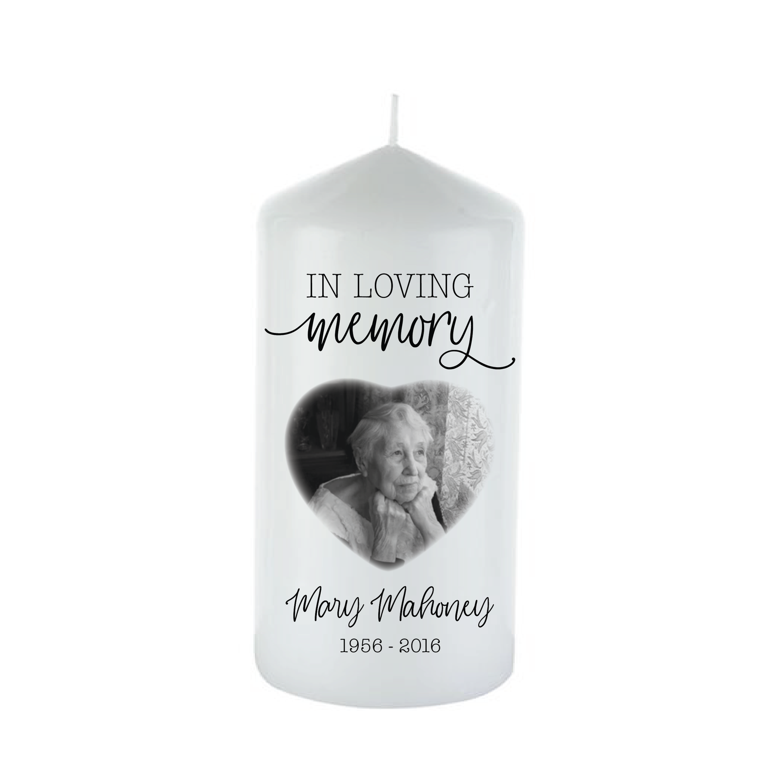 Personalised with a black and white photo, name and date range (optional)
