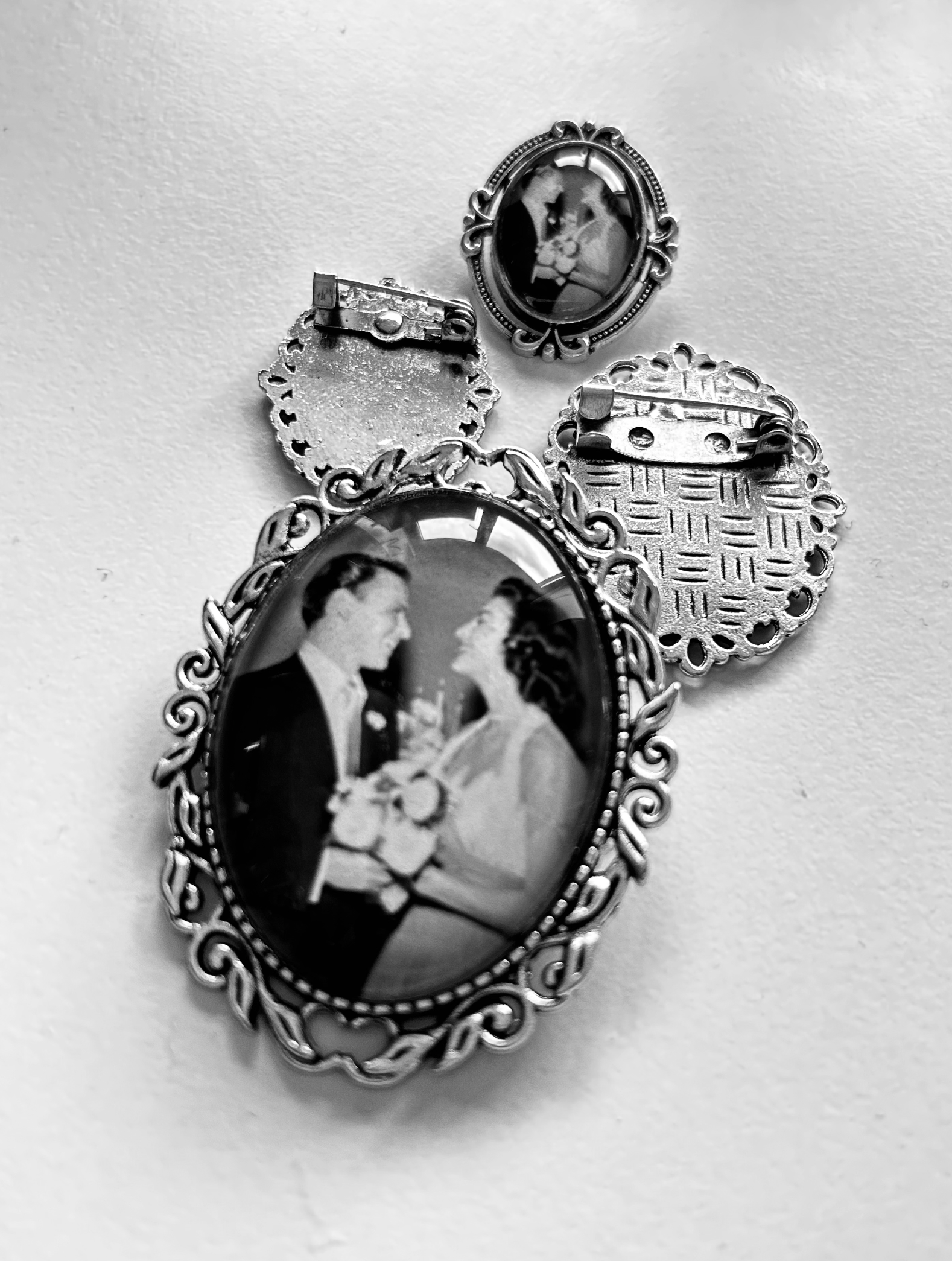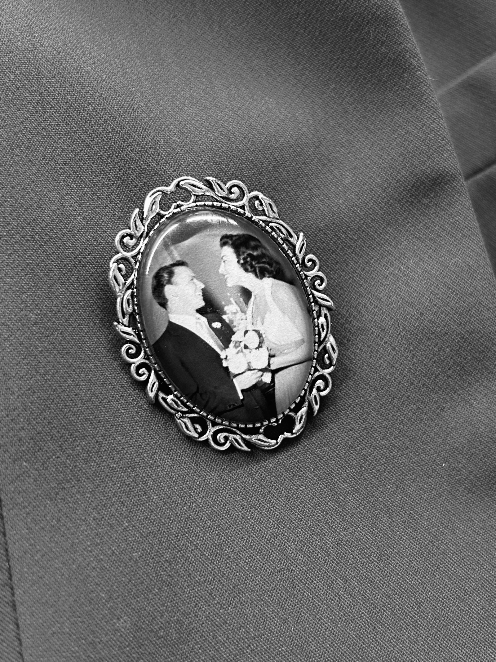 Incorporate loved ones who are no longer with you in your wedding with an antique-style memorial photo brooch.
