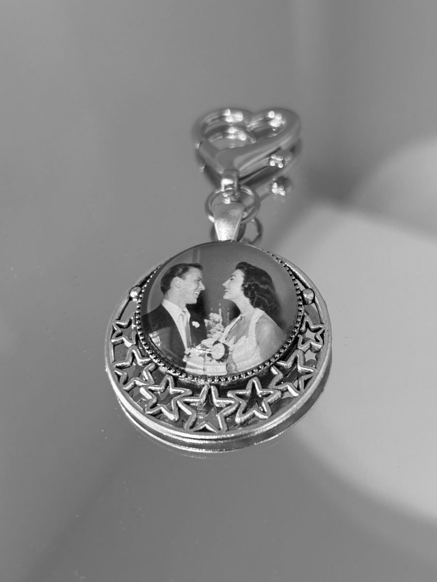 Incorporate loved ones who are no longer with you in your wedding with this beautiful Moon & Stars memorial wedding bouquet photo charm.