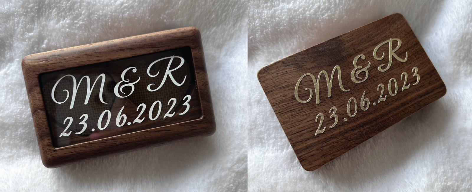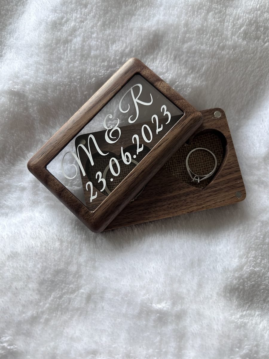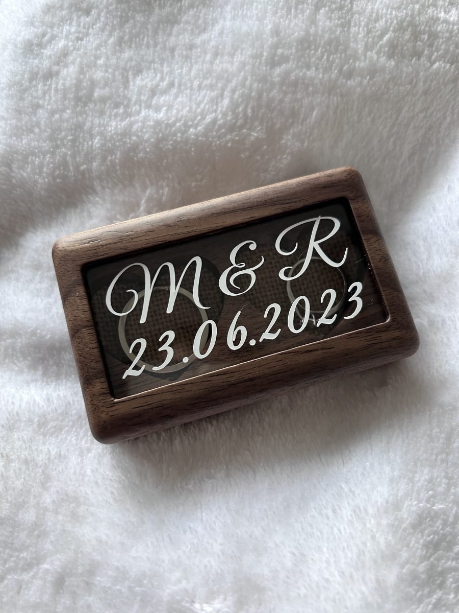Monogramed Rustic Wooden Wedding Ring Box with magnetic closure.