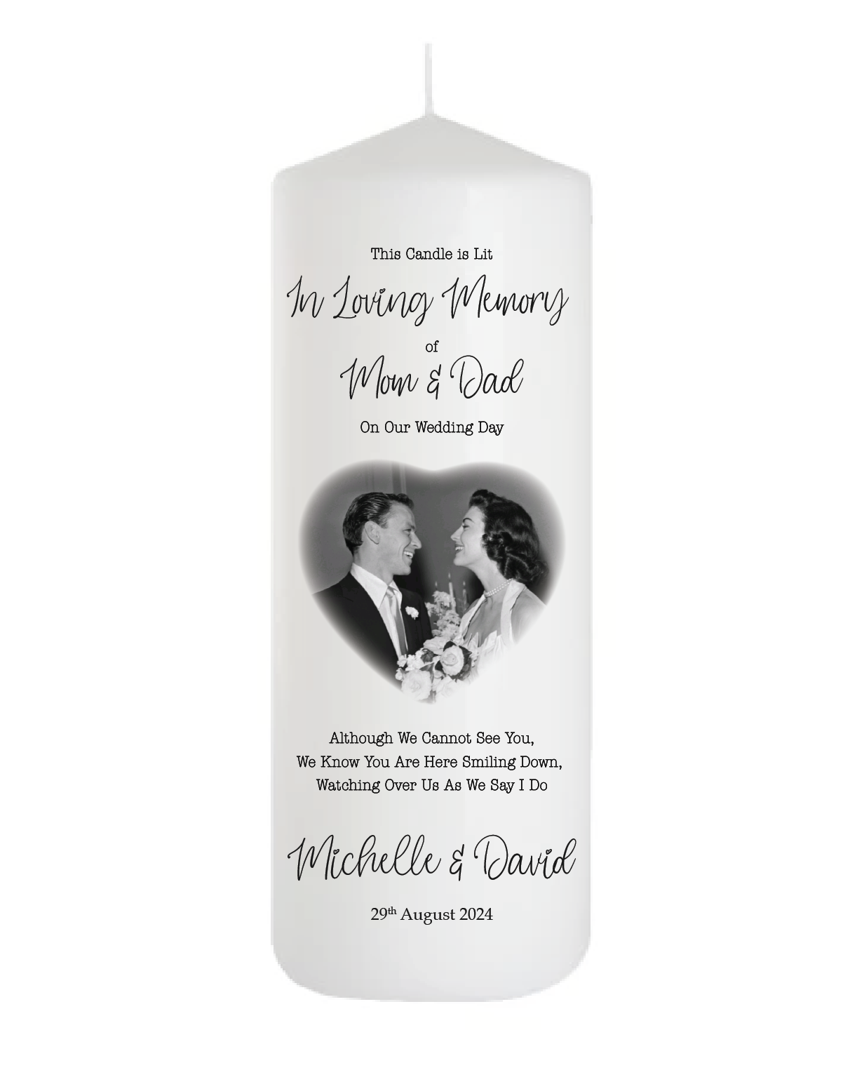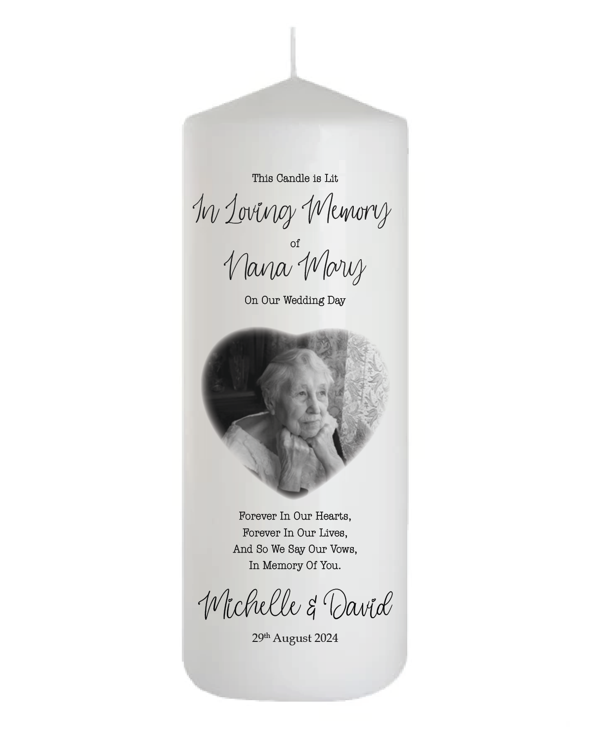Incorporate loved ones who are no longer with you in your wedding with this personalised memory candle.