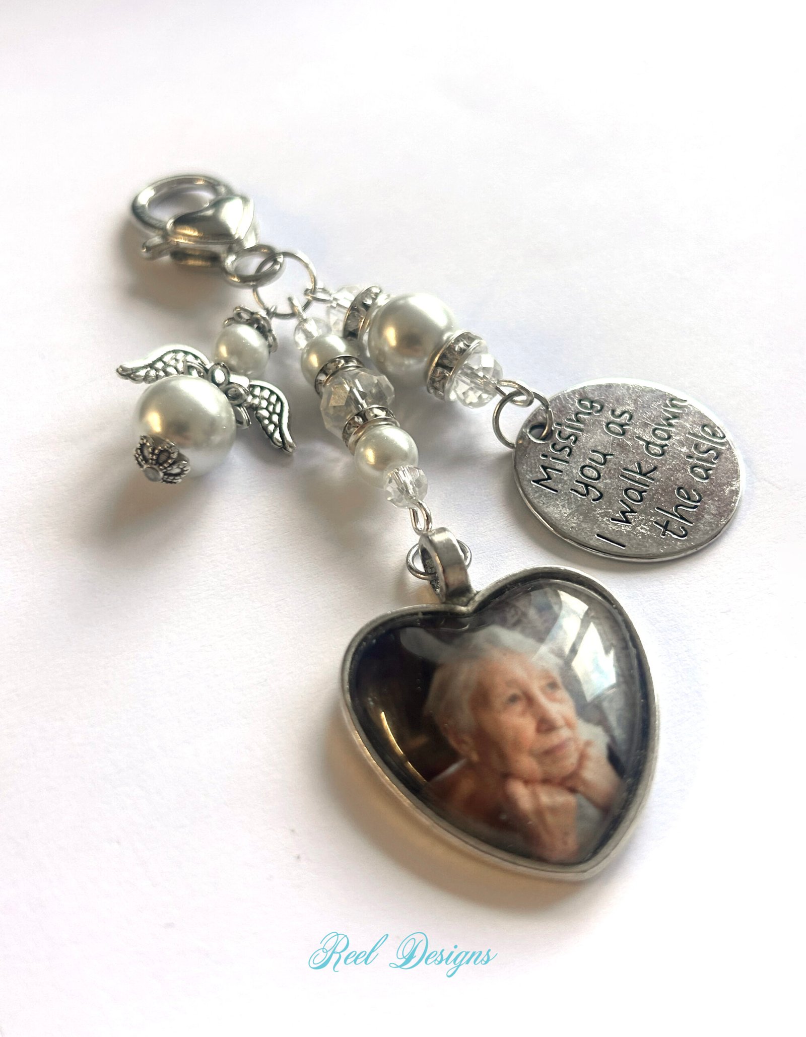Incorporate loved ones who are no longer with you in your wedding with these wedding bouquet photo charms.