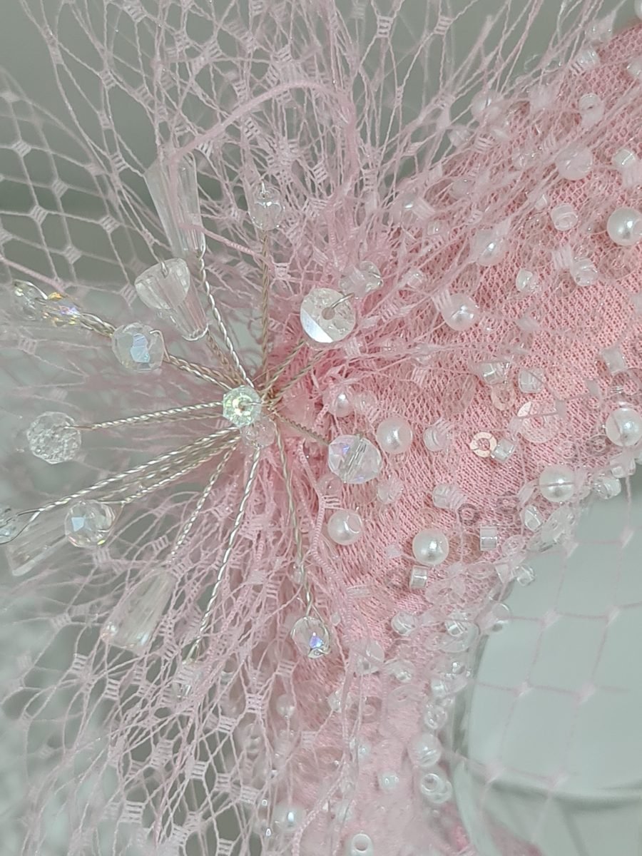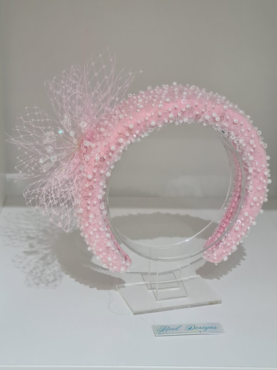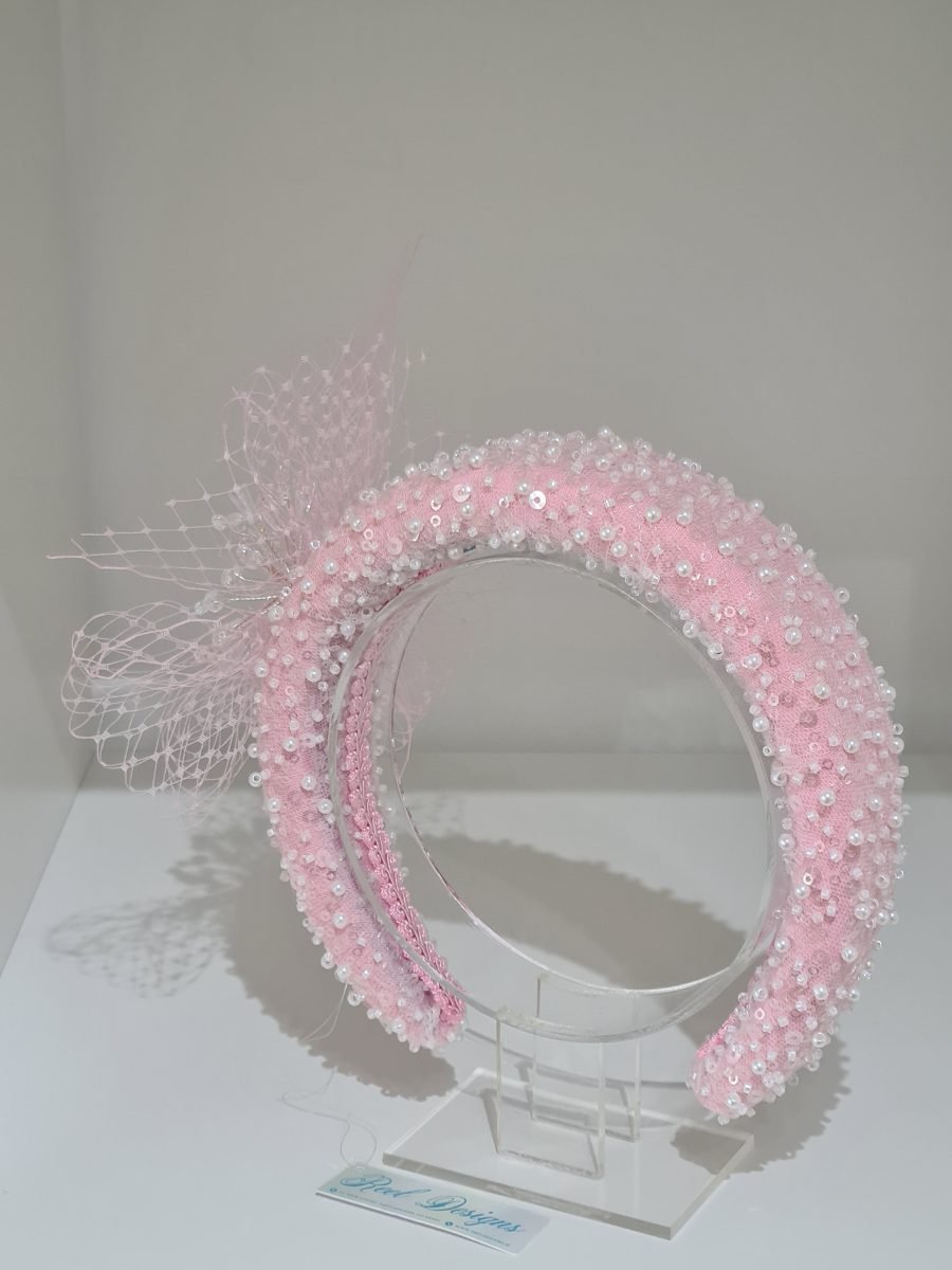 Light pink padded headband with pearls